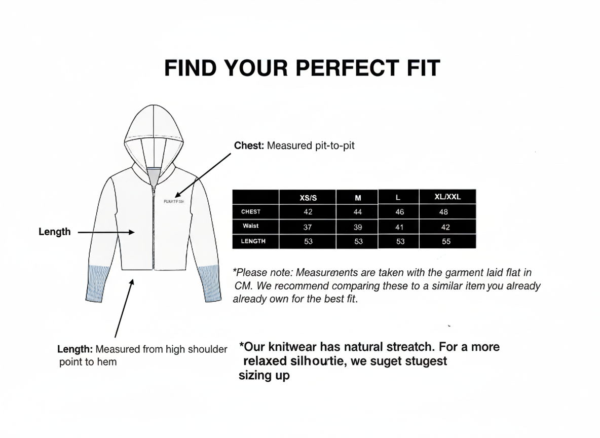 Authentic Punkyfish Design: Faithfully reproduced to match the original garment's fit and detailing. The signature cropped silhouette and cosy, ribbed texture capture the authentic early 2000s aesthetic.