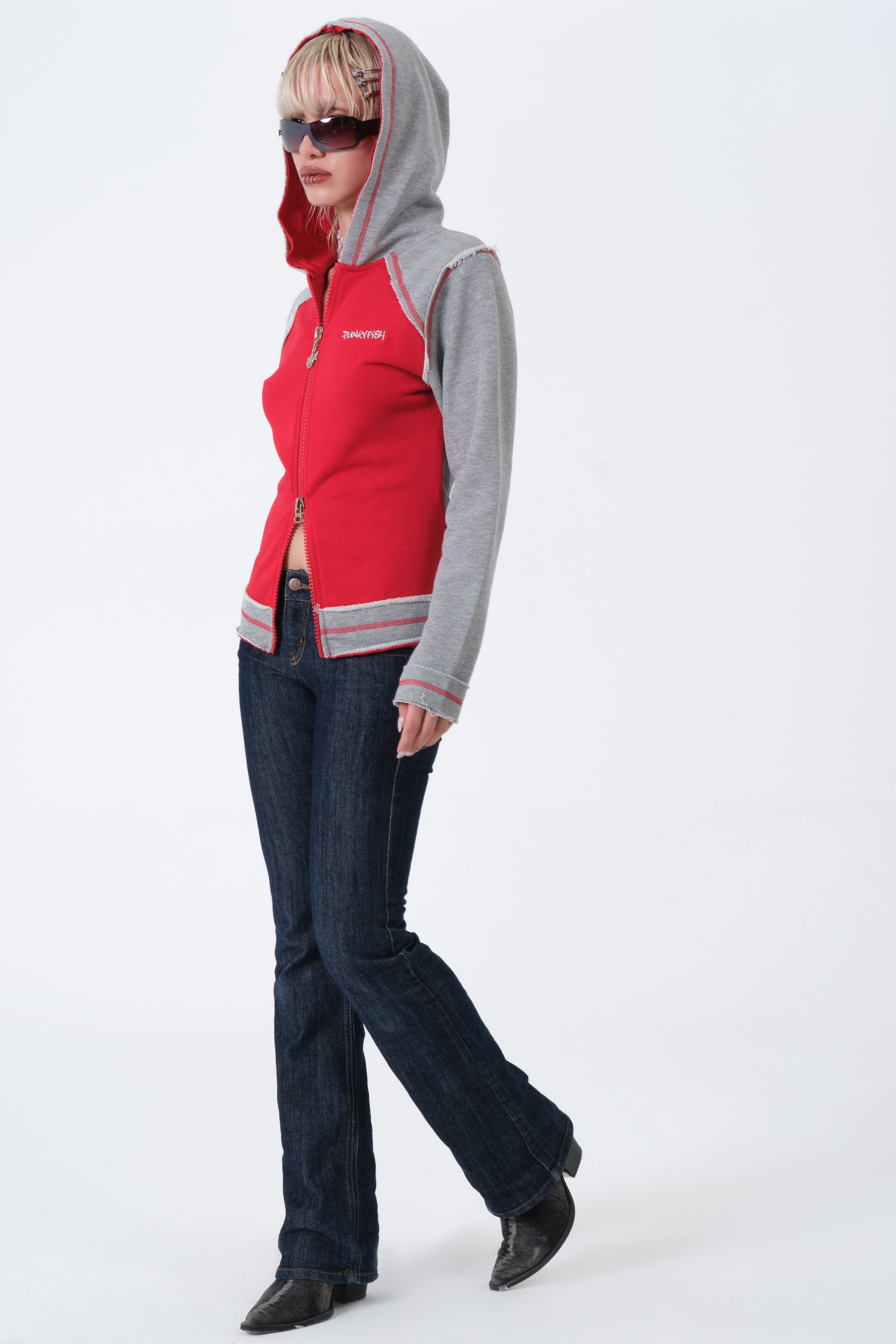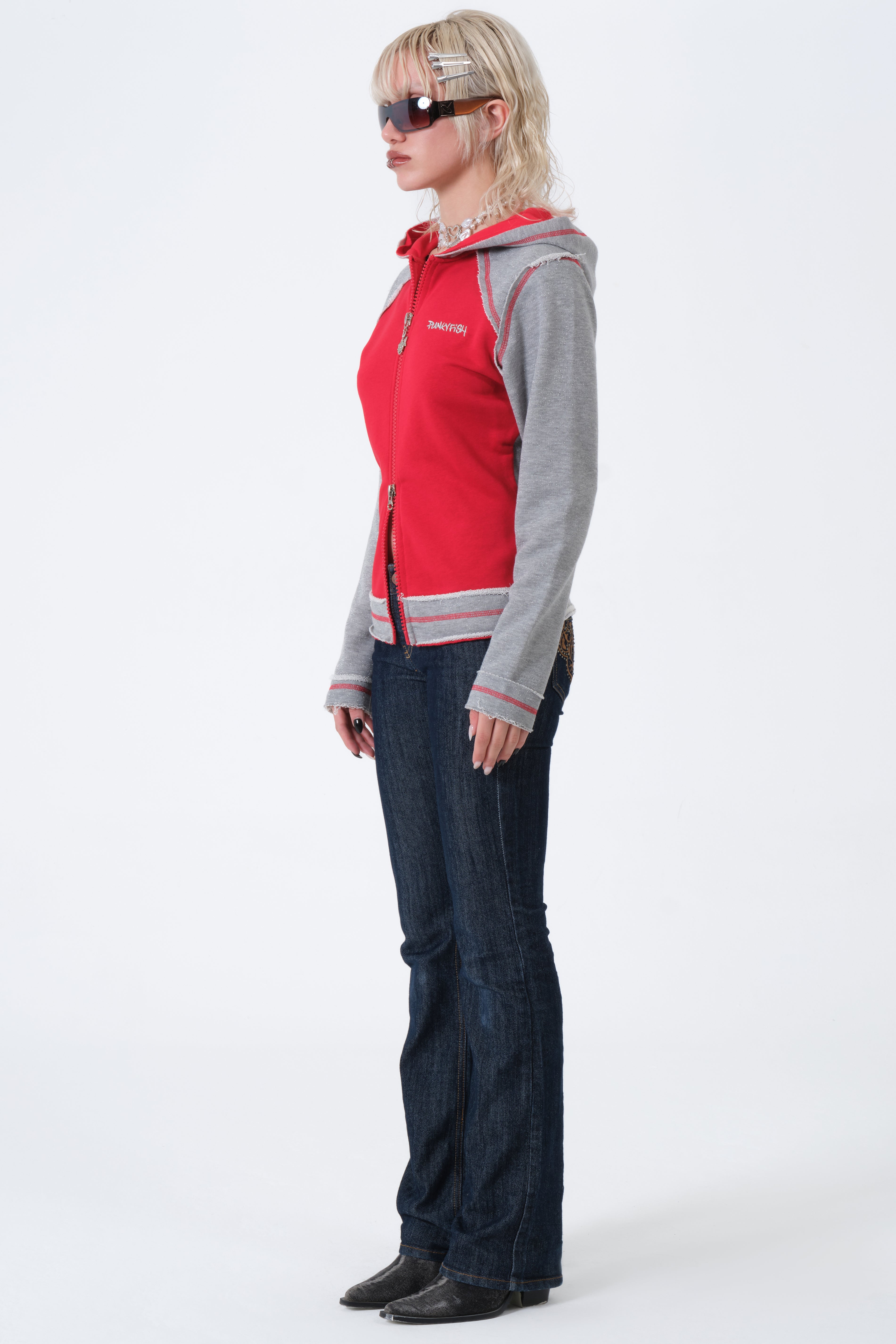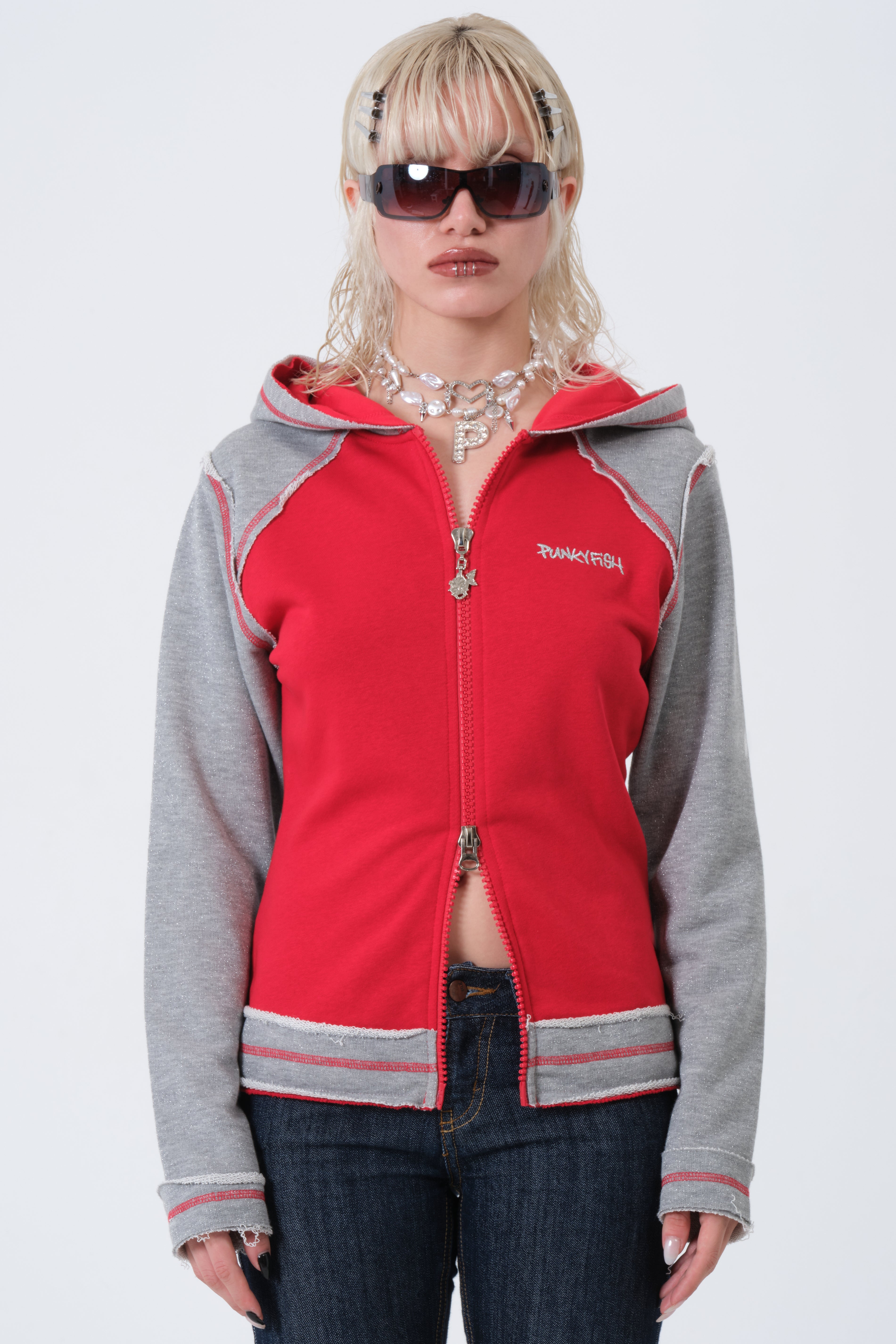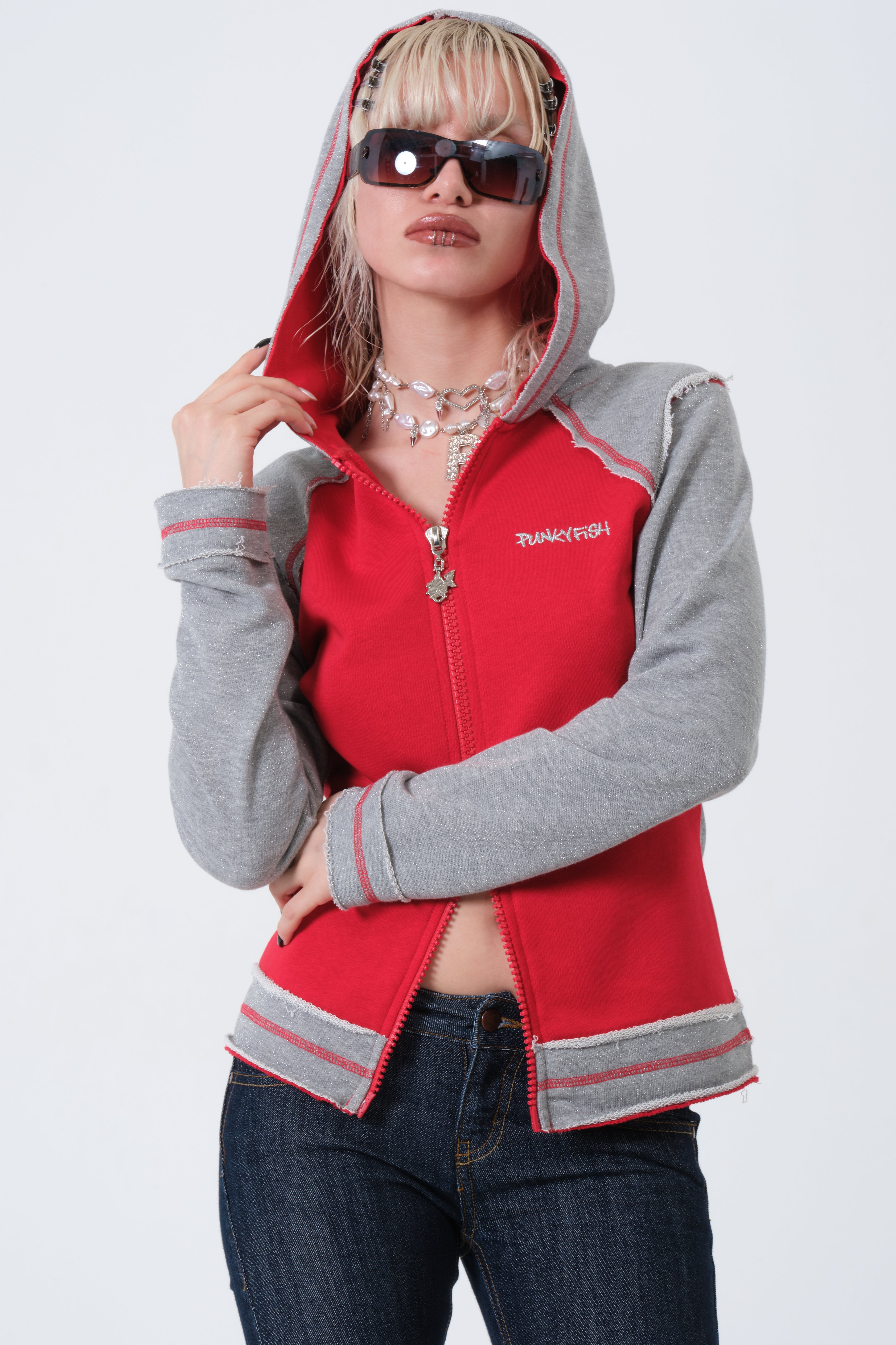 With its bold red and grey contrast panels, this archive hoodie embodies the fearless, defiant attitude Rose needed when facing her greatest enemy. This style, known for its Punkyfish Y2K aesthetic, is a must-have for collectors and fans worldwide.